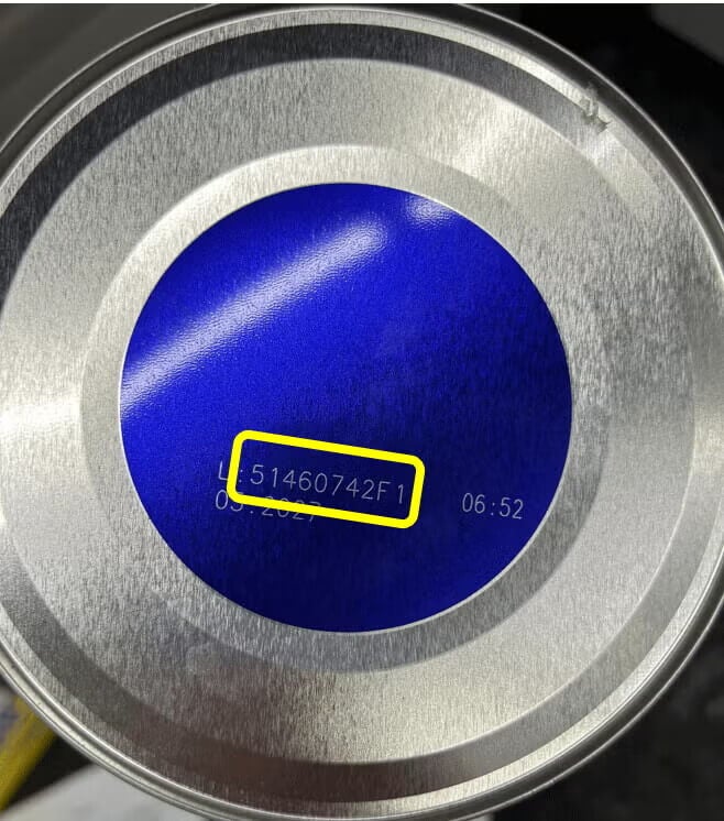 Verifique o número do lote, que está impresso na parte inferior da lata.
